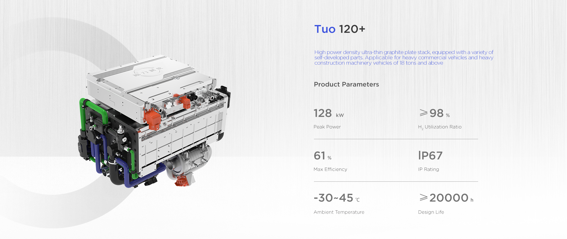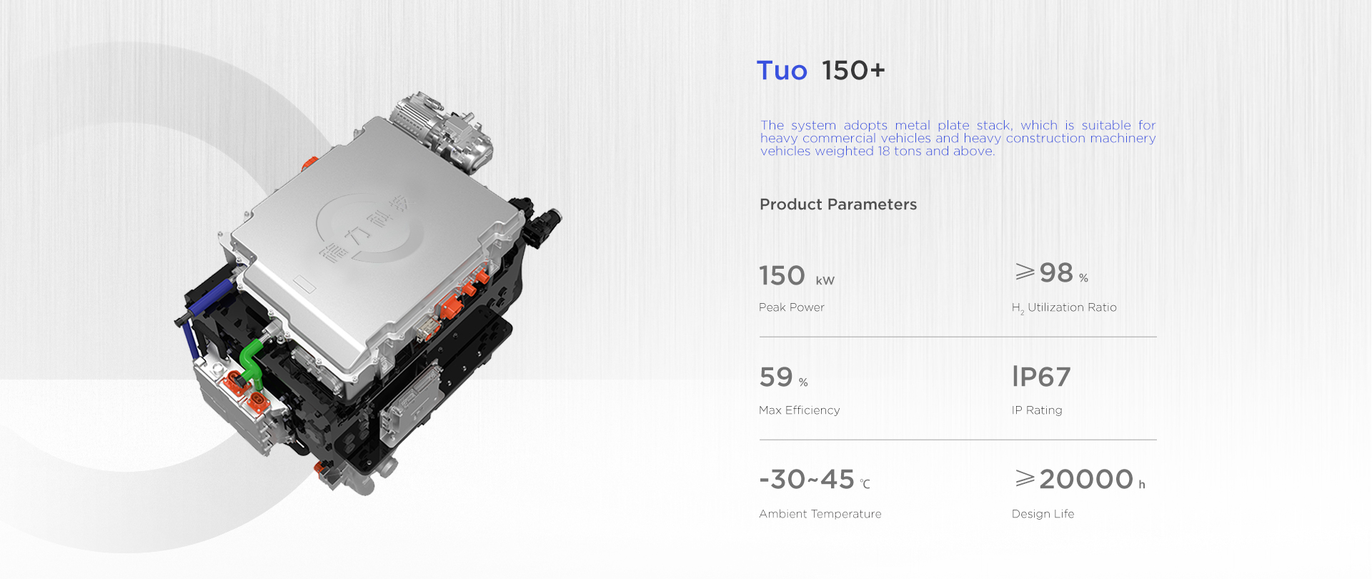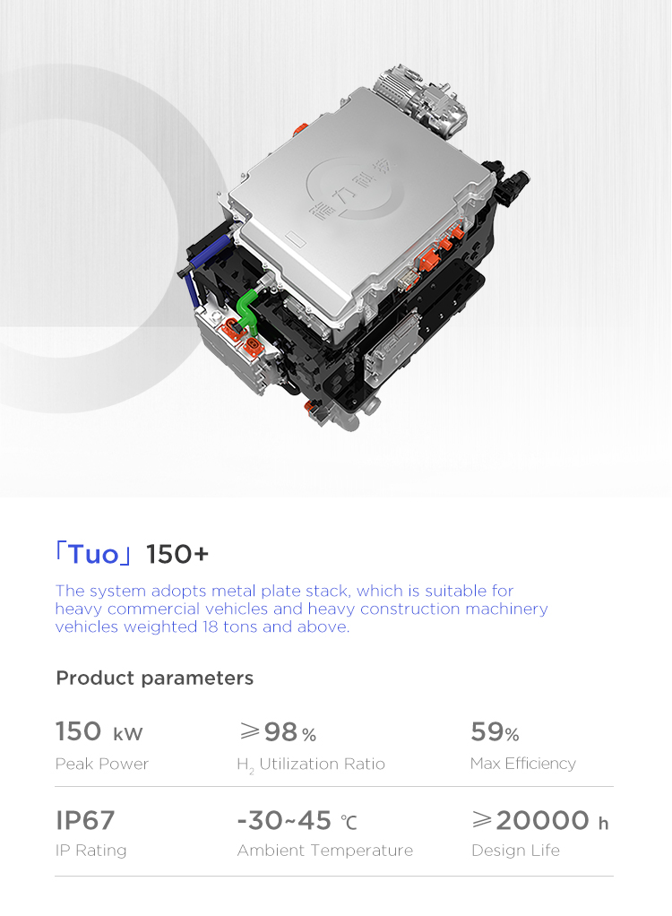 The power coverage of this series of fuel cell systems ranges from 80kW to 150kW, and can be applied to light, medium and heavy commercial vehicles and heavy construction machinery vehicles.