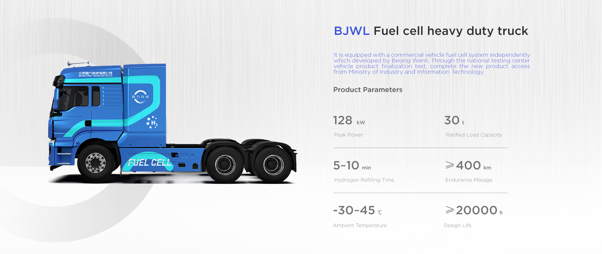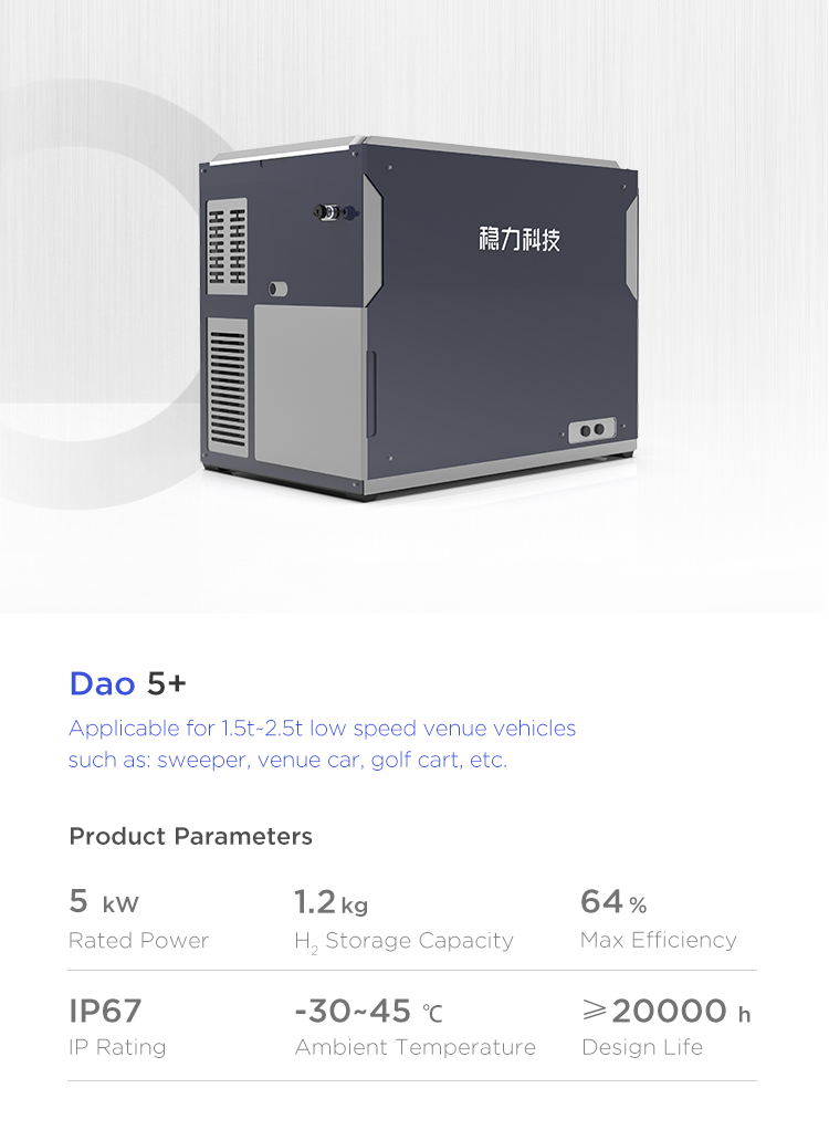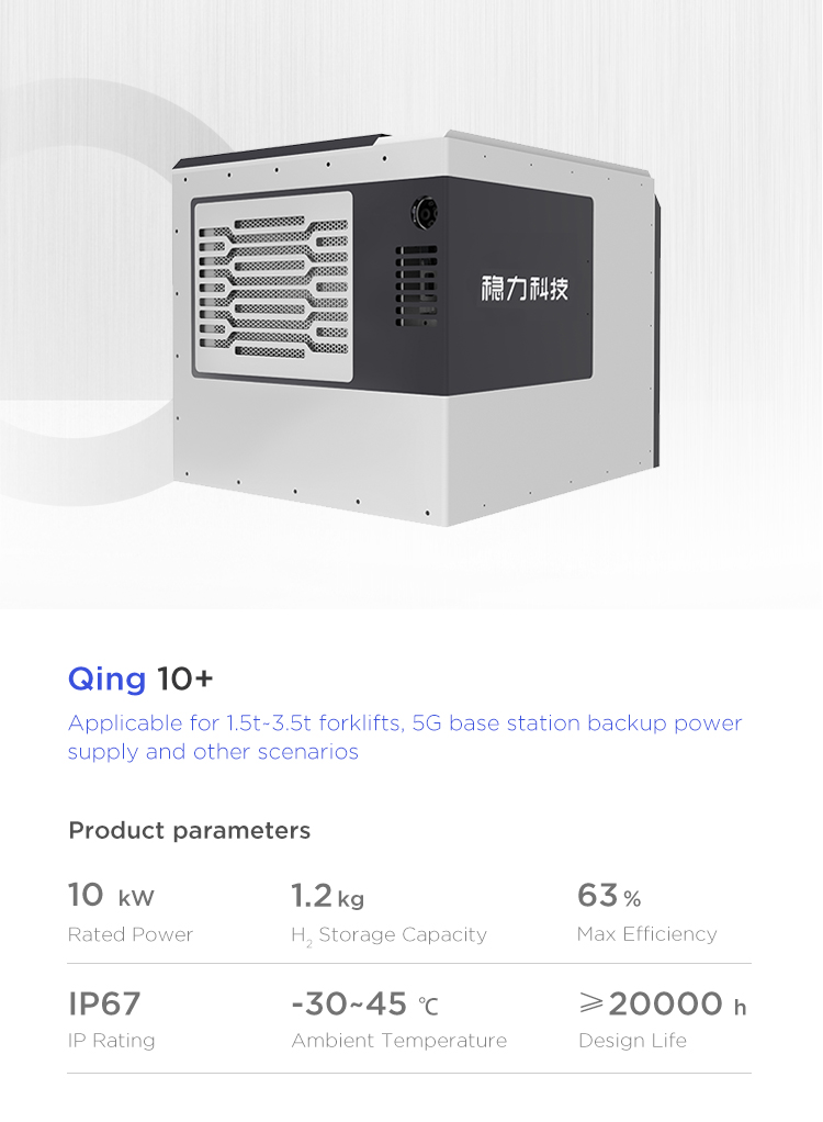 The forklift fuel cell system independently developed by Beijing Wltech can be customized. It adopts modular design with low maintenance cost, strong environmental adaptability, low noise, high reliability, high stability and other characteristics. Refilling hydrogen in 3 minutes, working for 4-6 hours, zero pollution and zero emission, and meets the requirements of “carbon peaking and carbon neutrality".